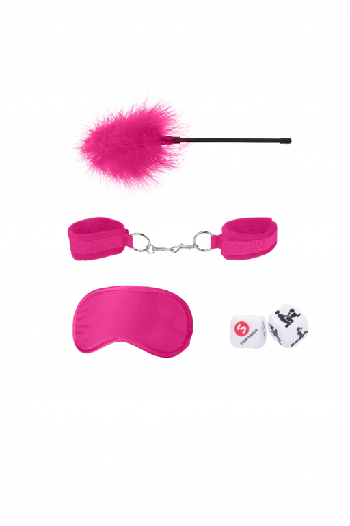 Набор БДСМ-девайсов розовый "Ouch" наручники, маска, ласкалка, кубики