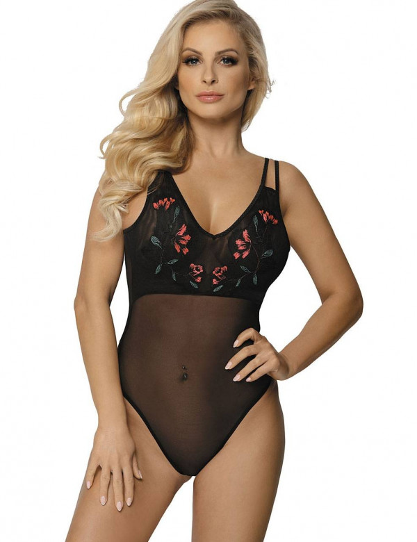 Лиф боди декорирован вышитым ярким цветочным узором, что придает образу особенную пикантность!